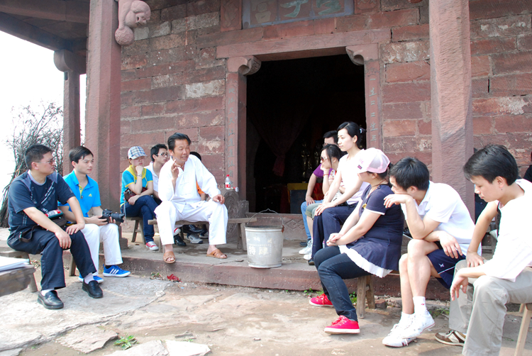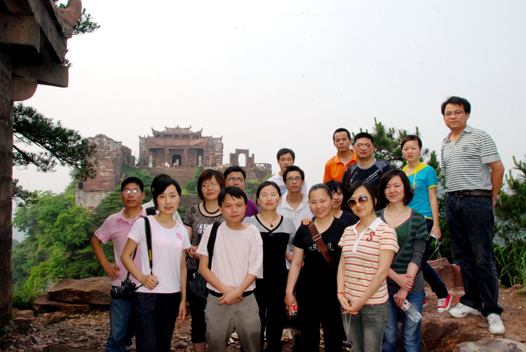 經(jīng)過兩個多小時攀登,我們終于到達(dá)山頂,站在“星德山門”的上坡處回頭望去,眾多山嶺已在我們腳下,山風(fēng)將云霧在山脊的兩邊吹得轉(zhuǎn)來轉(zhuǎn)去,讓山脊擺出了許多優(yōu)美的造型。過觀音殿,登百步梯,踏舍身巖、經(jīng)文昌閣,繞百子堂,星德山真正的主人——星子宮出現(xiàn)在我們面前。星德山是一座道教名山,人稱“道興紫覆之地”,與譽(yù)為“中國南武當(dāng)”的慈利縣五雷山隔山相望,互為犄角,山中自然景觀與人文景觀交相輝映。休息了一會后,我們便開始欣賞山上的風(fēng)景,同事們都被這美麗而壯闊的風(fēng)景所吸引,直到要下山了還依依不舍不愿離去。