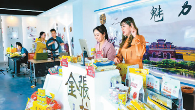 安徽省滁州市楊郢鄉(xiāng)紅星村電商服務(wù)站內(nèi),工作人員正在分揀貨物、發(fā)貨、處理網(wǎng)上訂單。
