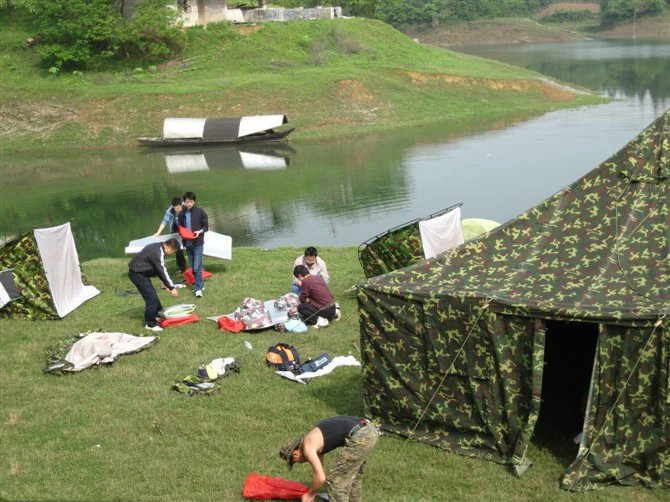 隨著那蕩起的層層波浪,不知不覺間到達(dá)了目的地—學(xué)堂峪村。下了船,男士們在“風(fēng)雨者”王哥的帶領(lǐng)下開始搭帳篷,女士們理所當(dāng)然負(fù)責(zé)做飯,男女搭配,干活不累,大家都開始忙碌了。隨行的小朋友們到處游玩,釣魚的釣魚,看風(fēng)景的看風(fēng)景,照相的照相,玩得不亦樂乎。